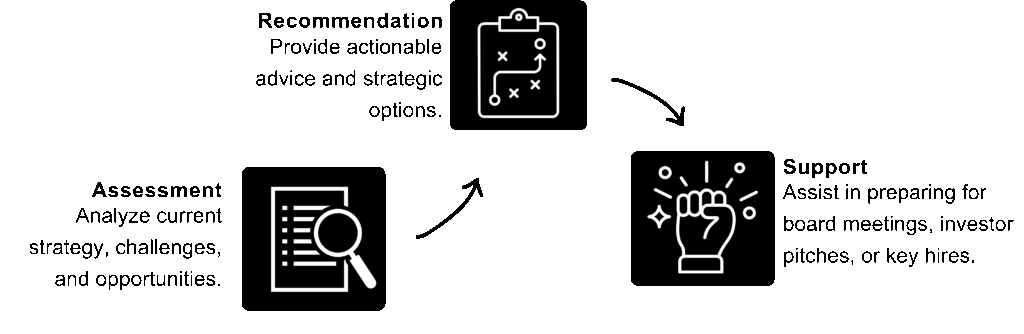 If there is a lack of executive-level technical or product strategy for key moments, such as fundraising, M&A, or board presentations. Founders need expert, part-time counsel without a full-time executive commitment.